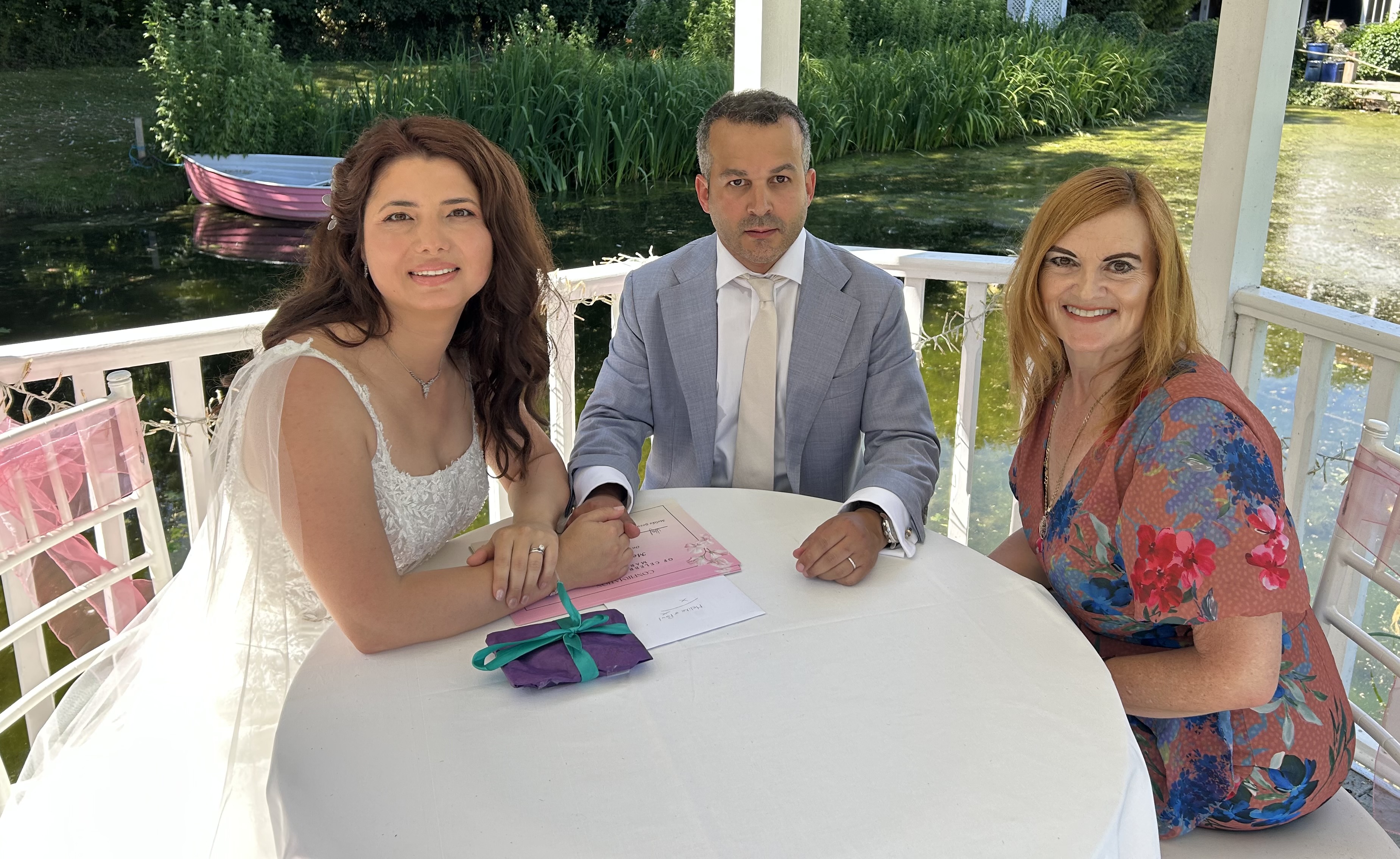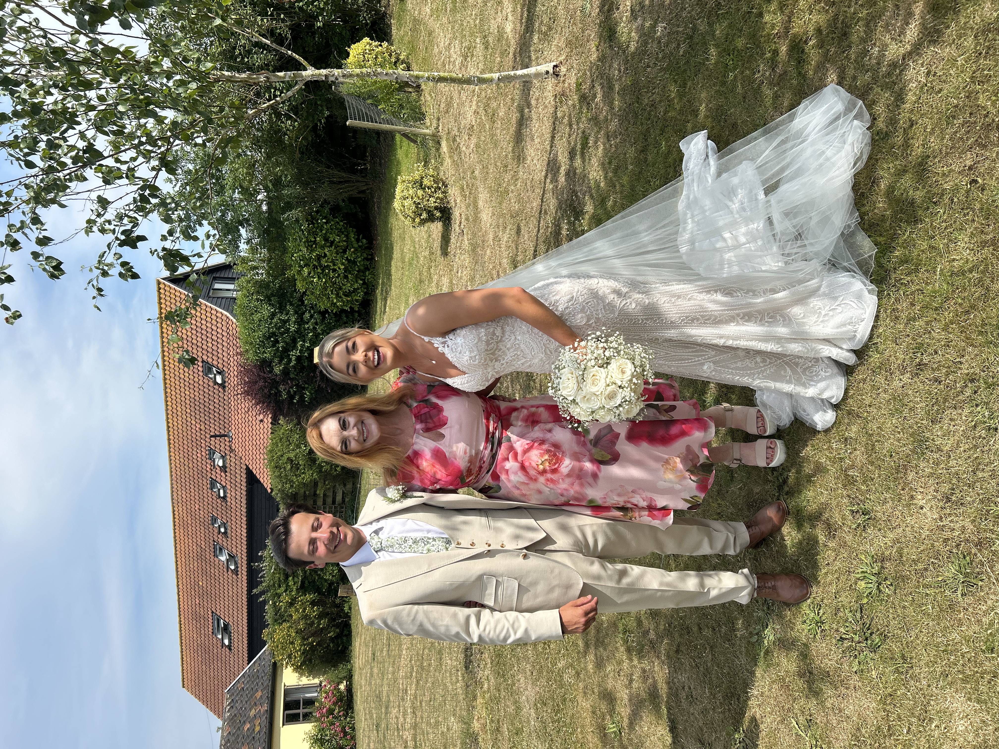 "I can truly say what a great person and celebrant you are! After our initial call you put me at ease and made sure all the detail of planning such an event was clearly explained. It was always easy to contact you and you were always quick to respond. You were highly engaged in the whole process and went the extra mile to help with the secrecy, event helping by collecting the flowers and tying them to the chairs, to name a few things. With your support and help you made this a very special day for us both, our friends and our family. xxx”Lauren and Arran - Shortmead House, Bedfordshire - August 2025